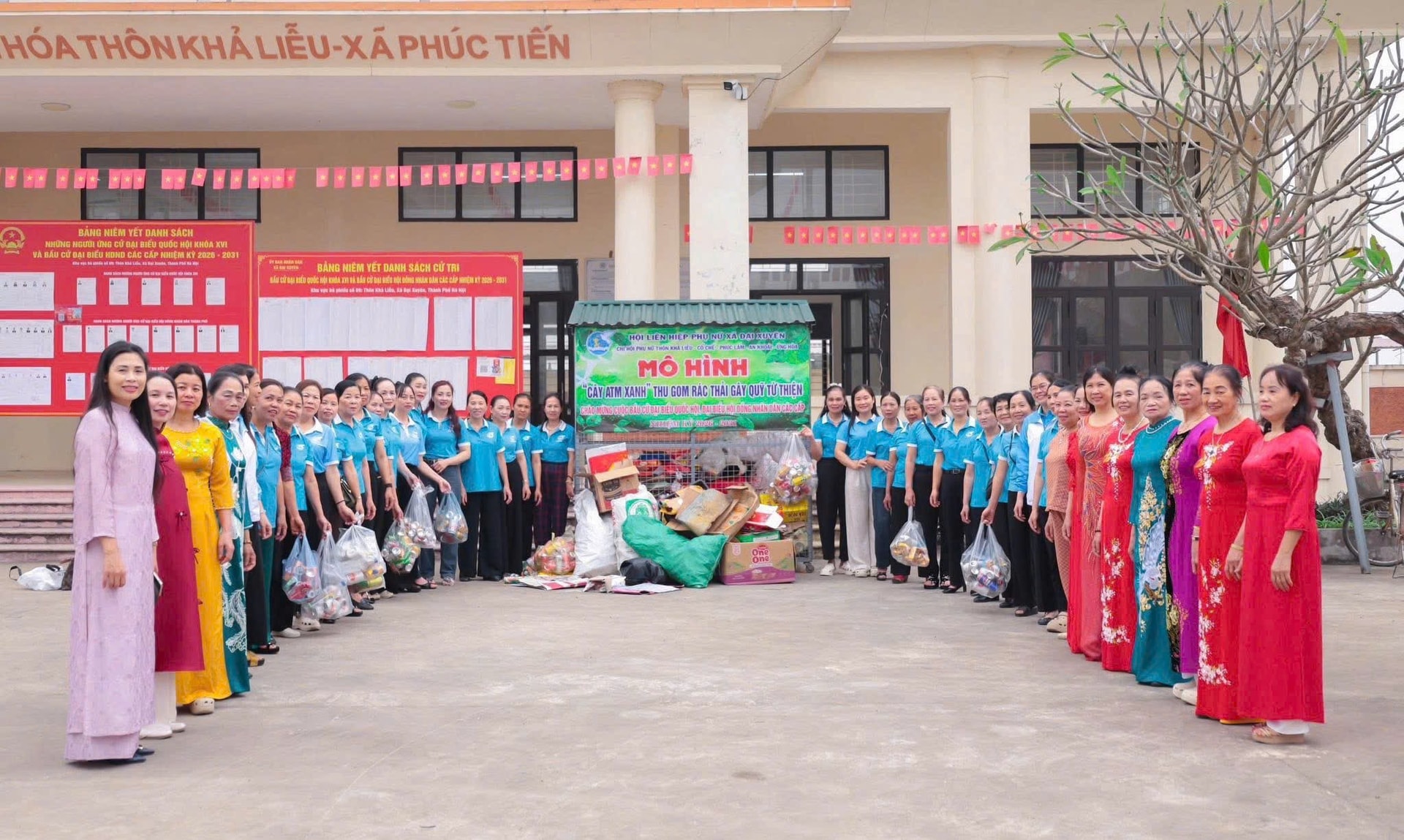 Hội Liên hiệp phụ nữ xã Đại Xuyên ra mắt "Cây ATM xanh" thu gom rác thải gây quỹ từ thiện. Ảnh: PV