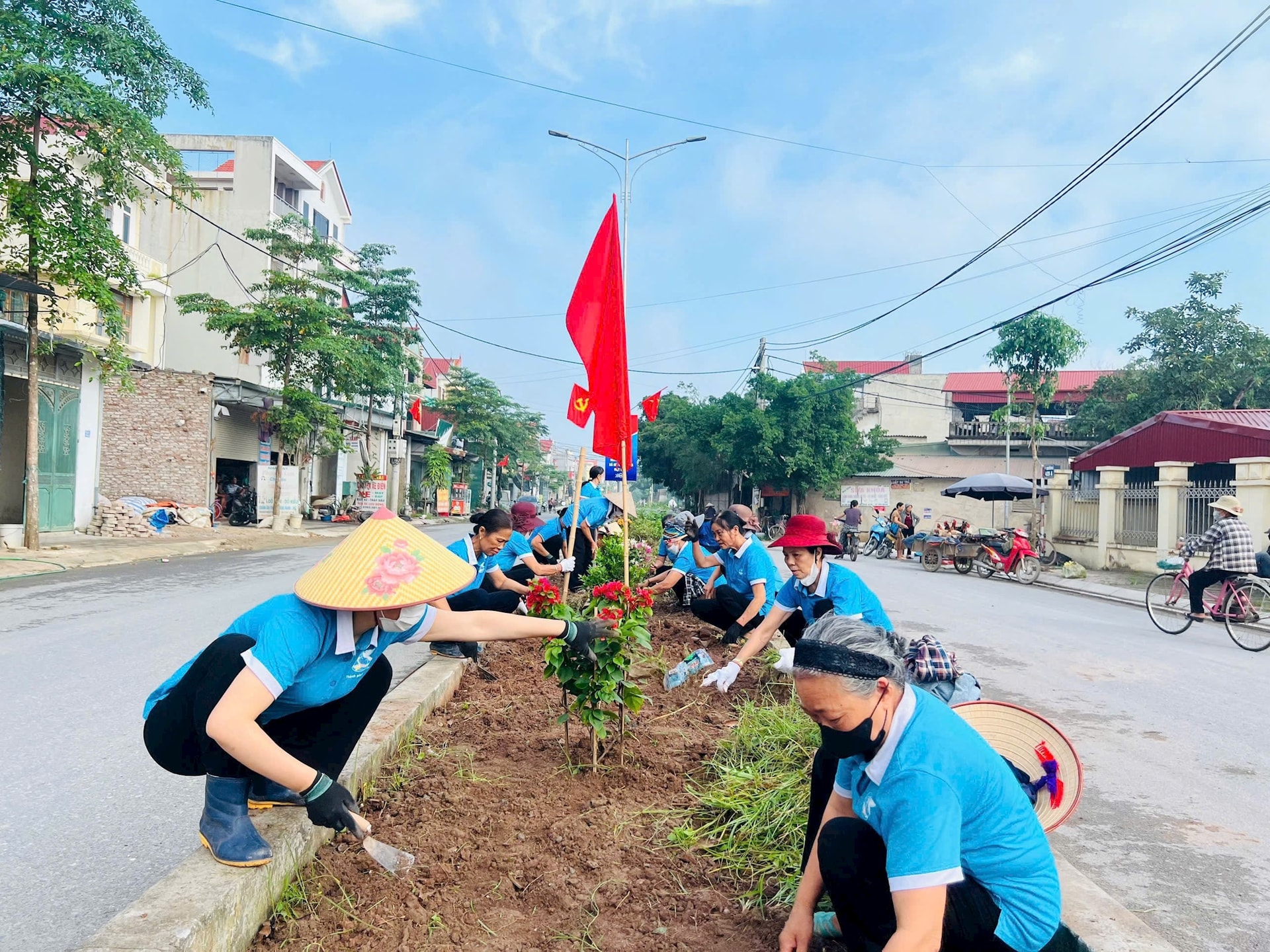 Các hội viên phụ nữ trồng mới hoa và cây xanh tại các “đường hoa phụ nữ tự quản”. Ảnh: PV