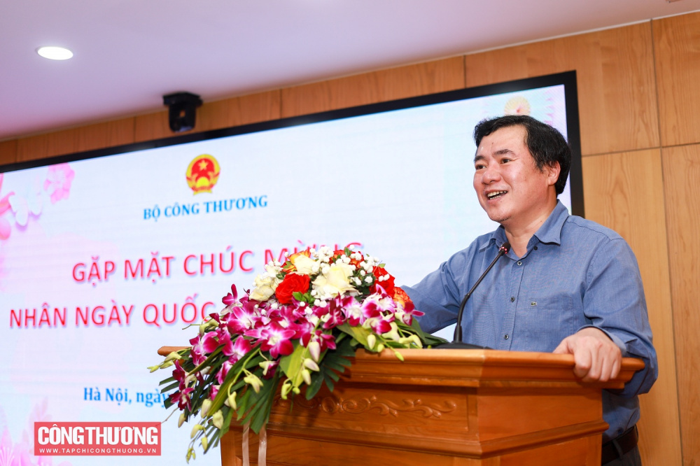Phát biểu tại buổi gặp mặt, thay mặt Ban Thường vụ Đảng ủy và tập thể lãnh đạo Bộ Công Thương, Thứ trưởng Nguyễn Sinh Nhật Tân nhiệt liệt chào mừng các đại biểu tham dự lễ kỷ niệm và chúc mừng các nữ lãnh đạo cũng như phụ nữ toàn ngành nhân Ngày Quốc tế phụ nữ 8/3.