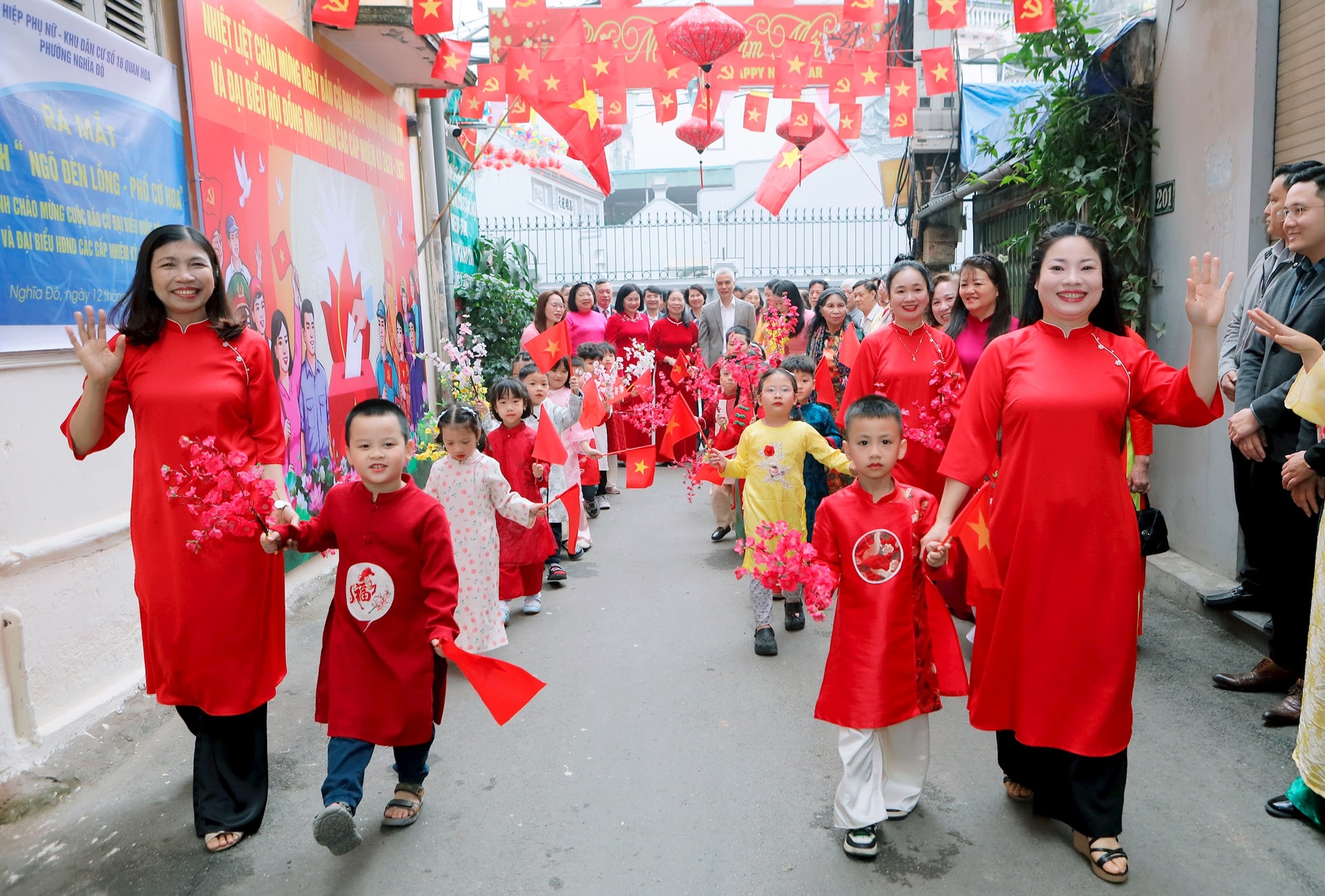 Bên cạnh công tác tuyên truyền, Hội Liên hiệp phụ nữ phường Nghĩa Đô còn triển khai nhiều hoạt động thiết thực, góp phần tạo không khí phấn khởi, sôi nổi trước ngày bầu cử. Một trong những điểm nhấn nổi bật là mô hình “Ngõ đèn lồng - Phố cờ hoa”, được triển khai tại các tuyến ngõ trên địa bàn.