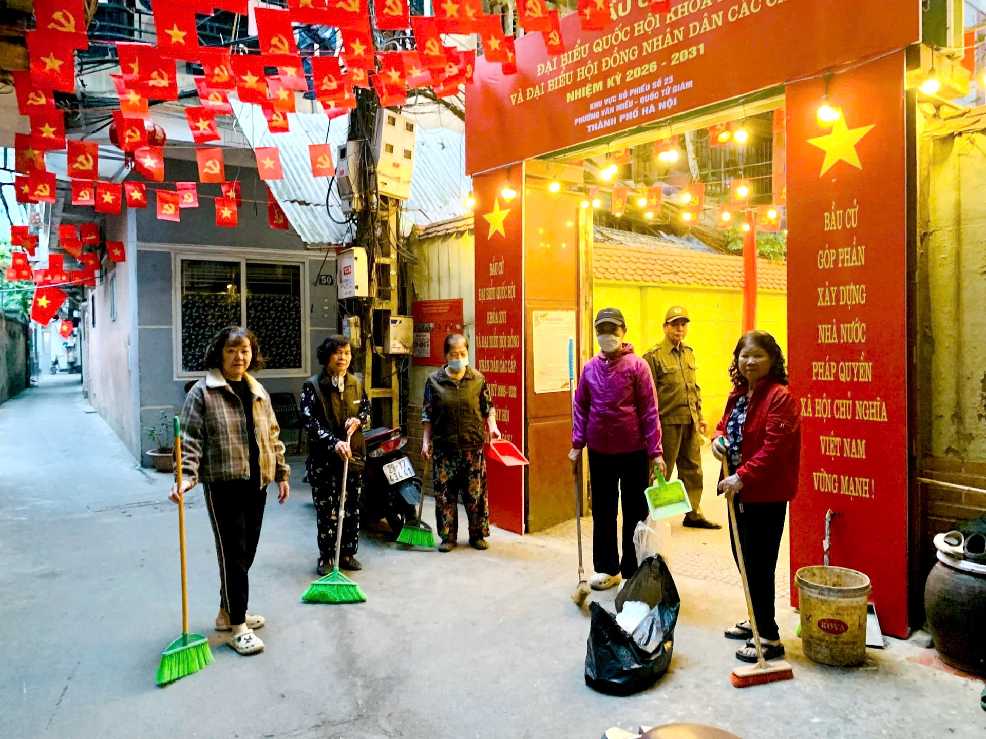 Cùng với đó, hoạt động tổng vệ sinh môi trường cũng được các chi hội phụ nữ đồng loạt triển khai, thu hút đông đảo hội viên tham gia. Những con ngõ sạch sẽ, gọn gàng, rực rỡ cờ hoa đã tạo nên bức tranh đô thị văn minh, góp phần làm nổi bật không khí ngày hội bầu cử.