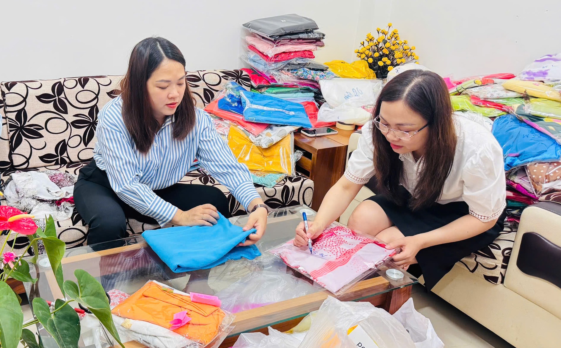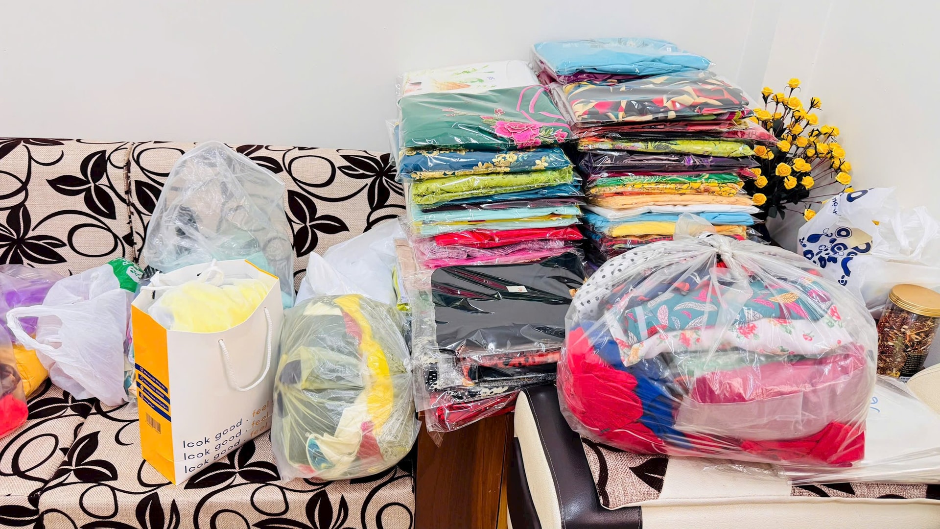 Hơn 600 bộ áo dài qua sử dụng và chưa qua sử dụng đã được chị em phụ nữ địa phương là ủi, xếp gấp gọn gàng, trân quý gửi tặng các cô giáo vùng cao bị ảnh hưởng bởi thiên tai, bão lũ.