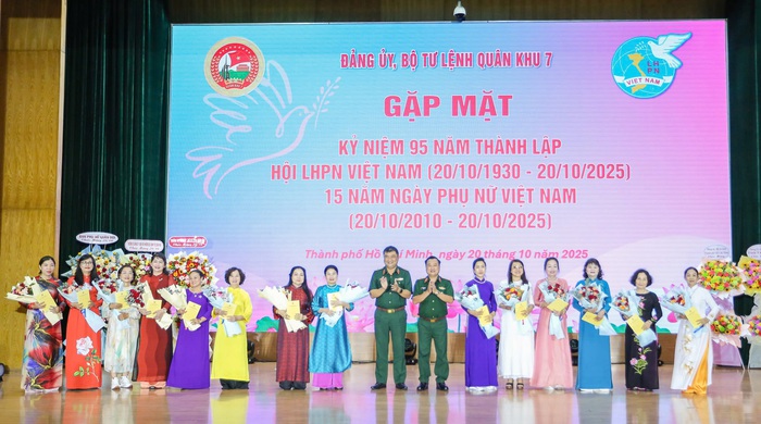 Chiều 20/10, Bộ Tư lệnh Quân khu 7 tổ chức gặp mặt nhân kỷ niệm 95 năm thành lập Hội LHPN Việt Nam (1930-2025) và 15 năm Ngày Phụ nữ Việt Nam (20/10/2010-20/10/2025).