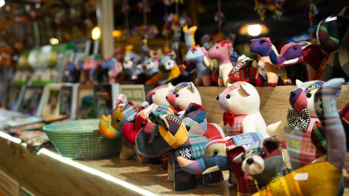 Gian hàng Sơn La được thiết kế với hình ảnh mái nhà sàn - biểu tượng của sự đoàn kết và ấm áp. Dưới mái nhà ấy, các chị, các mẹ vừa giới thiệu sản phẩm, vừa hướng dẫn khách dệt thổ cẩm, giã bánh dày, pha trà, kể về hành trình đưa sản phẩm quê hương vươn xa. Không chỉ là giao thương, đó còn là cuộc gặp gỡ giữa văn hóa và con người, giữa truyền thống và đổi mới sáng tạo.