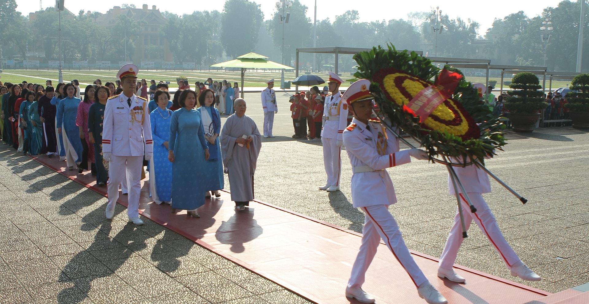Trong không khí trang nghiêm và thành kính, đoàn đại biểu đã dâng hoa vào viếng Lăng Chủ tịch Hồ Chí Minh và dâng hương tại Nhà 67. Đây là hoạt động ý nghĩa của đoàn thể hiện sự thành kính, tưởng nhớ, biết ơn vô hạn tới công lao to lớn của Chủ tịch Hồ Chí Minh trong sự nghiệp lãnh đạo Đảng, nhà nước, nhân dân giải phóng đất nước, trong đó có sự nghiệp giải phóng phụ nữ.