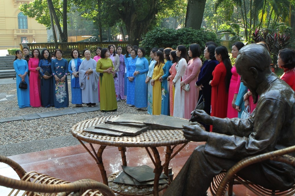 Đại biểu phụ nữ Thủ đô tham quan Khu di tích Chủ tịch Hồ Chí Minh. Ảnh: PV