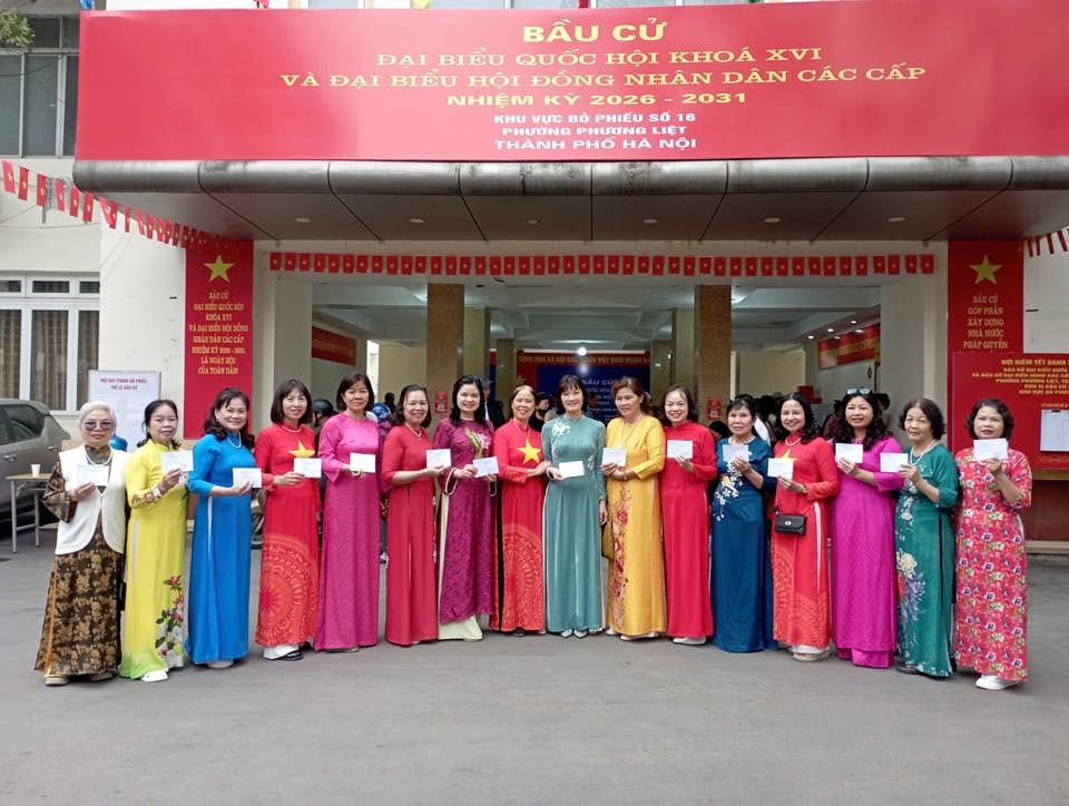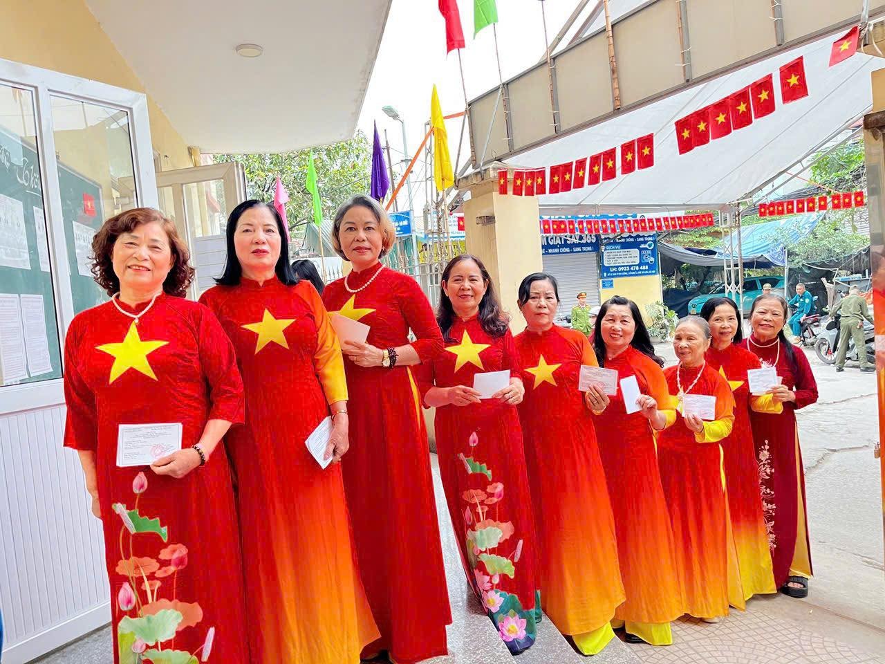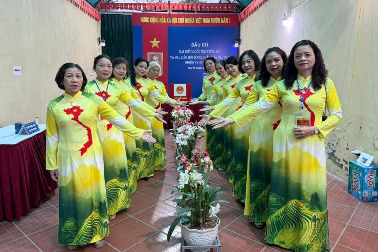 Hưởng ứng phong trào “Phụ nữ Thủ đô mặc áo dài đi bầu cử”, khắp các khu vực bỏ phiếu ngập tràn sắc màu rực rỡ. Trong tà áo dài thướt tha, các nữ cử tri không chỉ thực hiện quyền lợi công dân với niềm phấn khởi mà còn gửi gắm vào mỗi lá phiếu niềm tin sắt son, lựa chọn những đại biểu đủ đức, đủ tài.