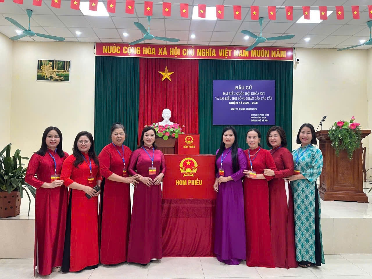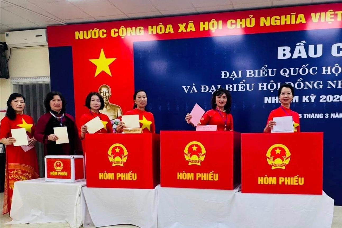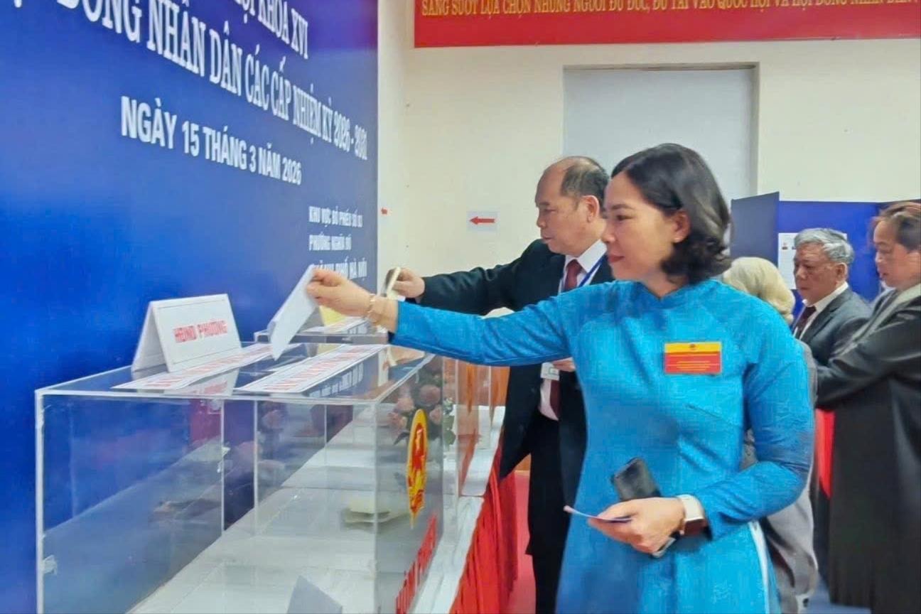 Hưởng ứng phong trào “Phụ nữ Thủ đô mặc áo dài đi bầu cử”, khắp các khu vực bỏ phiếu ngập tràn sắc màu rực rỡ. Trong tà áo dài thướt tha, các nữ cử tri không chỉ thực hiện quyền lợi công dân với niềm phấn khởi mà còn gửi gắm vào mỗi lá phiếu niềm tin sắt son, lựa chọn những đại biểu đủ đức, đủ tài.