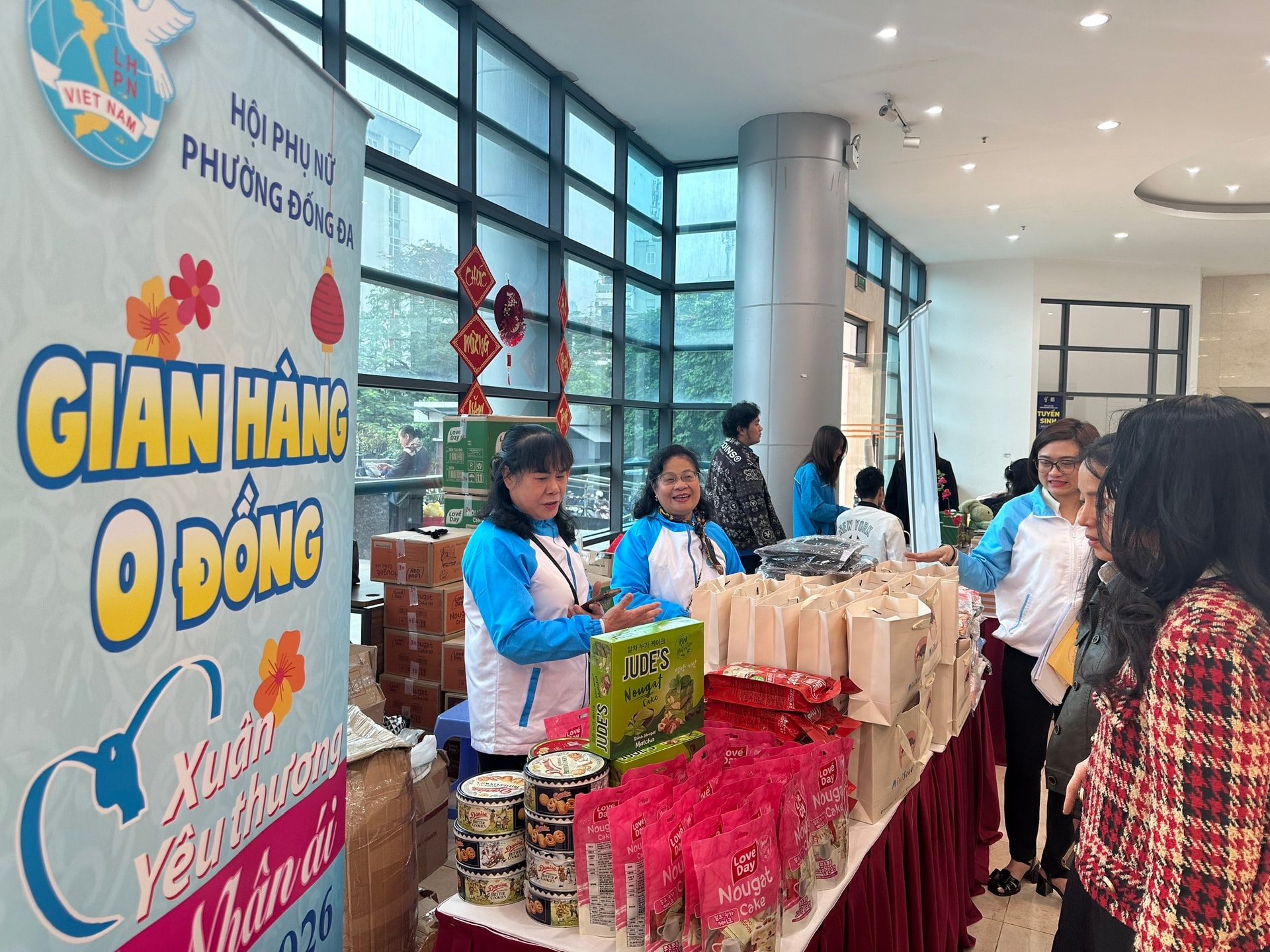 Gian hàng 0 đồng của Hội Liên hiệp phụ nữ phường Đống Đa. Ảnh: Bảo Lâm