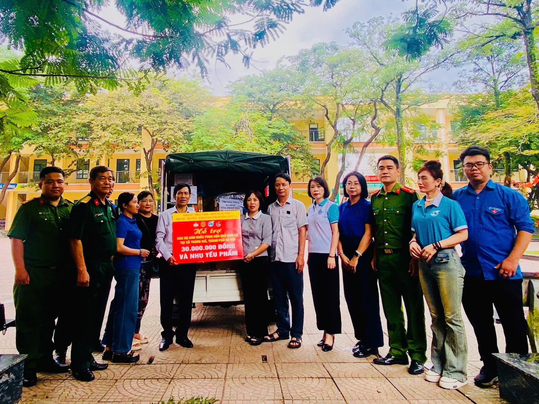 Đoàn đã trao tặng số tiền 30 triệu đồng và nhiều nhu yếu phẩm quan trọng do mạnh thường quân trên địa bàn đóng góp. Các vật phẩm bao gồm mỳ tôm, nước, vở viết, đồ dùng học tập, bánh, sữa… là nguồn tiếp sức kịp thời, giúp bà con vùng lũ vượt qua khó khăn ban đầu.