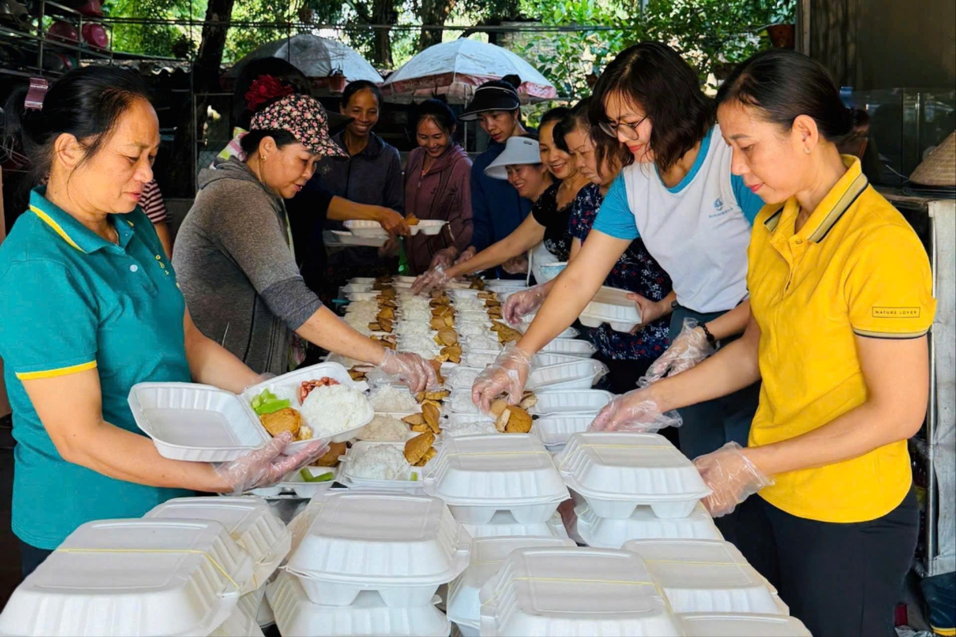 Không chỉ dừng lại ở công tác di dời, Hội Liên hiệp phụ nữ xã Sóc Sơn còn tích cực kêu gọi xã hội hóa; tổ chức bếp ăn dã chiến, cung cấp hơn 1.000 suất cơm nóng miễn phí, cùng hàng trăm phần quà nhu yếu phẩm như mì tôm, nước uống, lương khô đến tận tay các hộ dân bị cô lập và lực lượng chống bão. Những suất cơm nóng, những phần quà nhu yếu phẩm đã được các chi hội phụ nữ nấu và mang đến từng gia đình, thể hiện sự quan tâm sâu sắc và kịp thời.