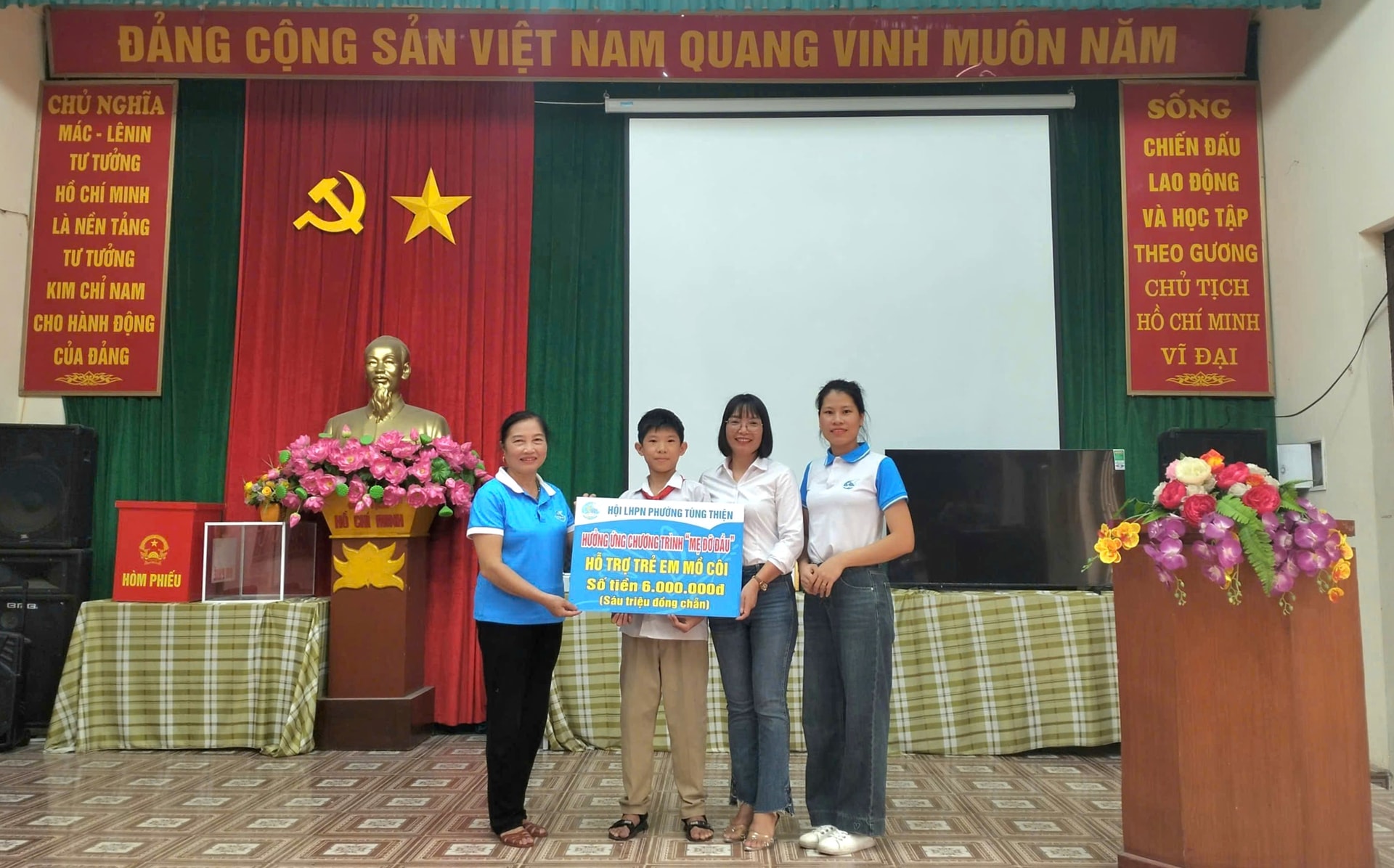 Hội Liên hiệp nữ phường Tùng Thiện trích quỹ nhân đạo hỗ trợ trẻ em mồ côi. Ảnh: Thanh Hương