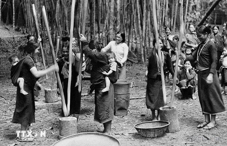 Trưởng thành trong phong trào đấu tranh cách mạng của dân tộc, phụ nữ Việt Nam đã nêu bật những phẩm chất cao quý về lòng trung thành với Tổ quốc, về tinh thần hy sinh dũng cảm, vì sự nghiệp của cách mạng. Trong ảnh: Phụ nữ dân tộc Tây Nguyên giã gạo ủng hộ bộ đội giải phóng trong kháng chiến chống Mỹ, cứu nước. (Ảnh: Nhật Sơn/TTXVN)