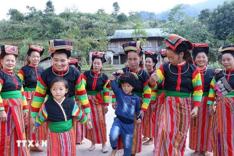 Phụ nữ dân tộc Cống ở xã Nậm Khao, huyện Mường Tè (Lai Châu) chú trọng truyền dạy văn hóa cho lớp trẻ. (Ảnh: Trần Văn Hoàng/TTXVN)