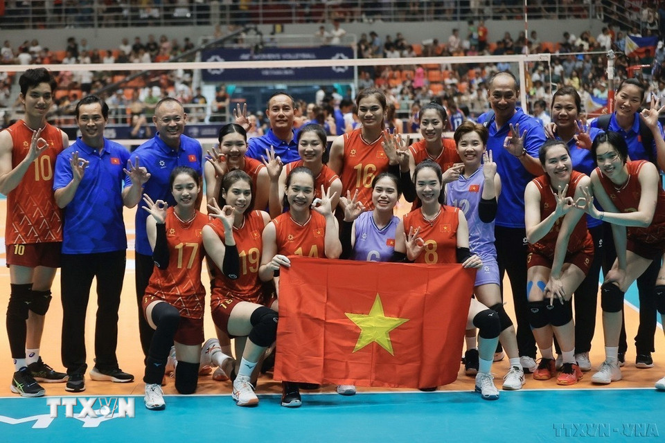 Đội tuyển bóng chuyền nữ Việt Nam thi đấu xuất sắc và giành Cúp vô địch Giải bóng chuyền nữ châu Á-AVC Nations Cup 2025. (Ảnh: Minh Quyết/TTXVN)