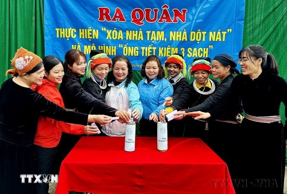Hội Liên hiệp Phụ nữ tỉnh Hà Giang ủng hộ để hỗ trợ các gia đình hội viên xây nhà trong chương trình xóa nhà tạm, nhà dột nát. (Ảnh: Đức Thọ/TTXVN)