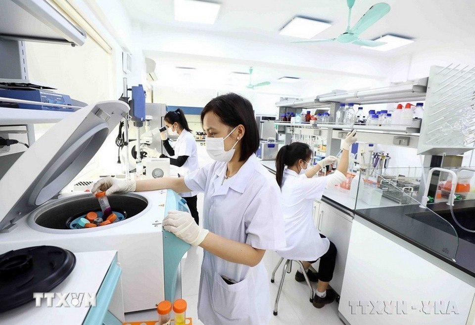 Nữ cán bộ, chiến sỹ Phòng Kỹ thuật bảo vệ (Bộ Tư lệnh Cảnh vệ, Bộ Công an) lấy mẫu kiểm nghiệm thực phẩm, nước uống đảm bảo an toàn các đối tượng cảnh vệ. (Ảnh: Phạm Kiên/TTXVN)