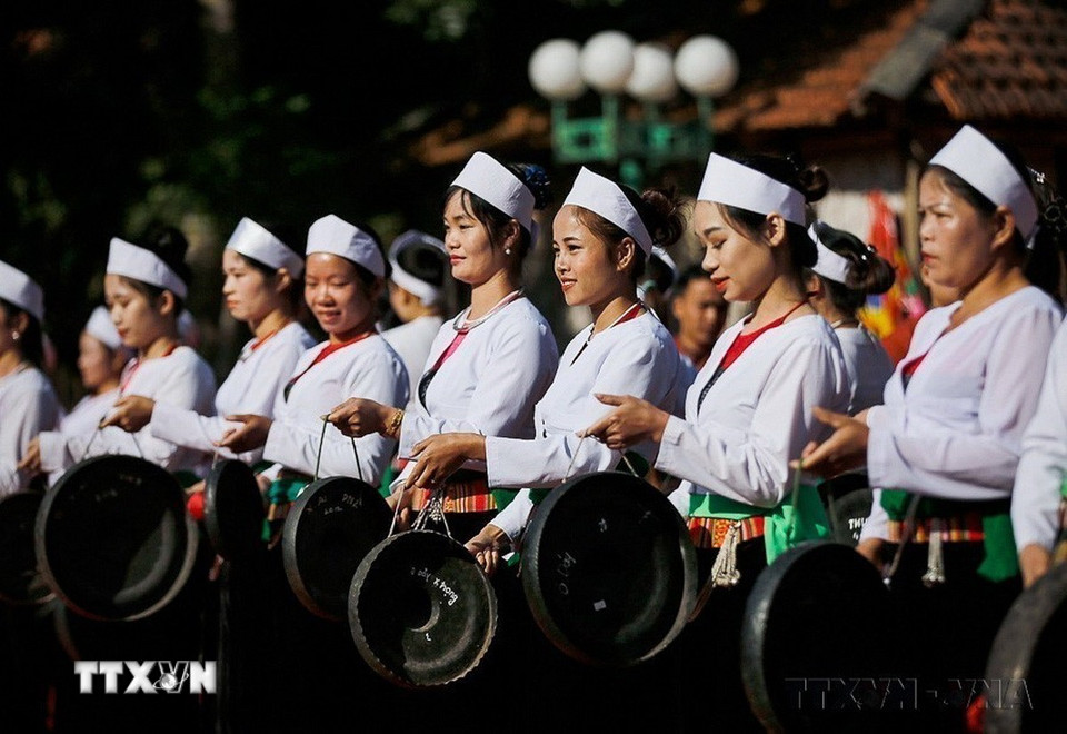 Phụ nữ Mường Hòa Bình gìn giữ vẻ đẹp riêng có của trang phục dân tộc mình. (Ảnh: Trọng Đạt/TTXVN)