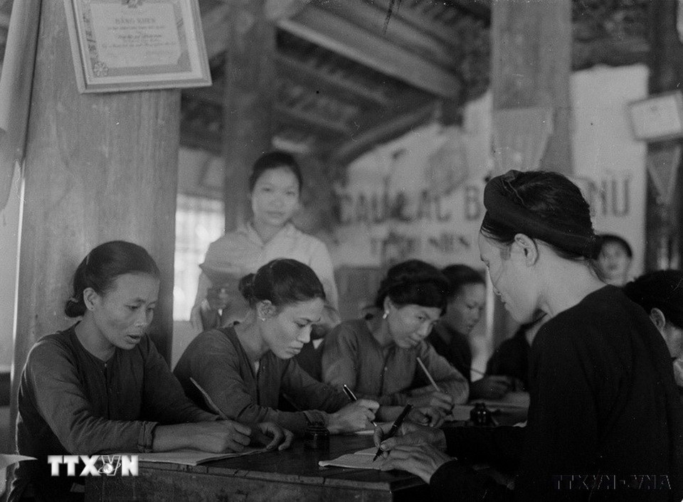 Hợp tác xã Kiều Mai (xã Phú Diễn, huyện Từ Liêm, Hà Nội) mở lớp học văn hóa để nâng cao trình độ văn hóa cho phụ nữ (1967). (Ảnh: Thế Trung/ TTXVN)