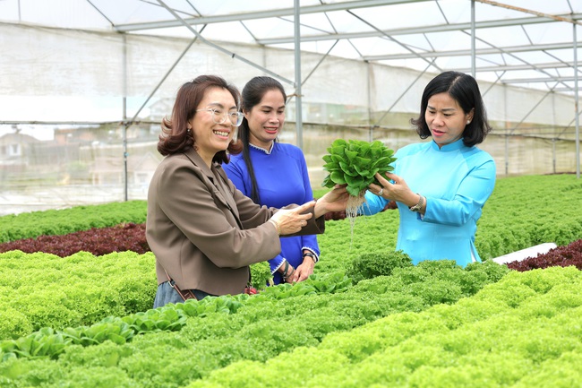 Ủy viên TƯ Đảng, Phó Chủ tịch UBTƯ MTTQ Việt Nam, Chủ tịch Hội LHPN Việt Nam Nguyễn Thị Tuyến (bìa phải) thăm hợp tác xã do phụ nữ tham gia quản lý tại Lâm Đồng. Ảnh: Thu Hà