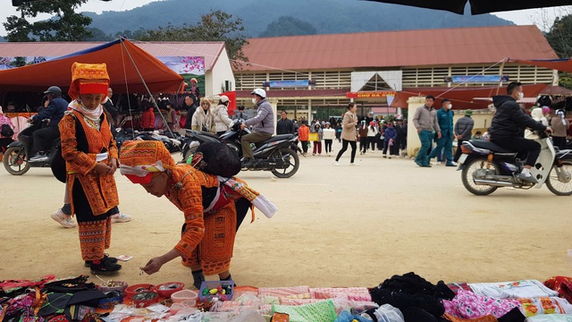 Giao lưu, trao đổi tâm tình tại phiên chợ.