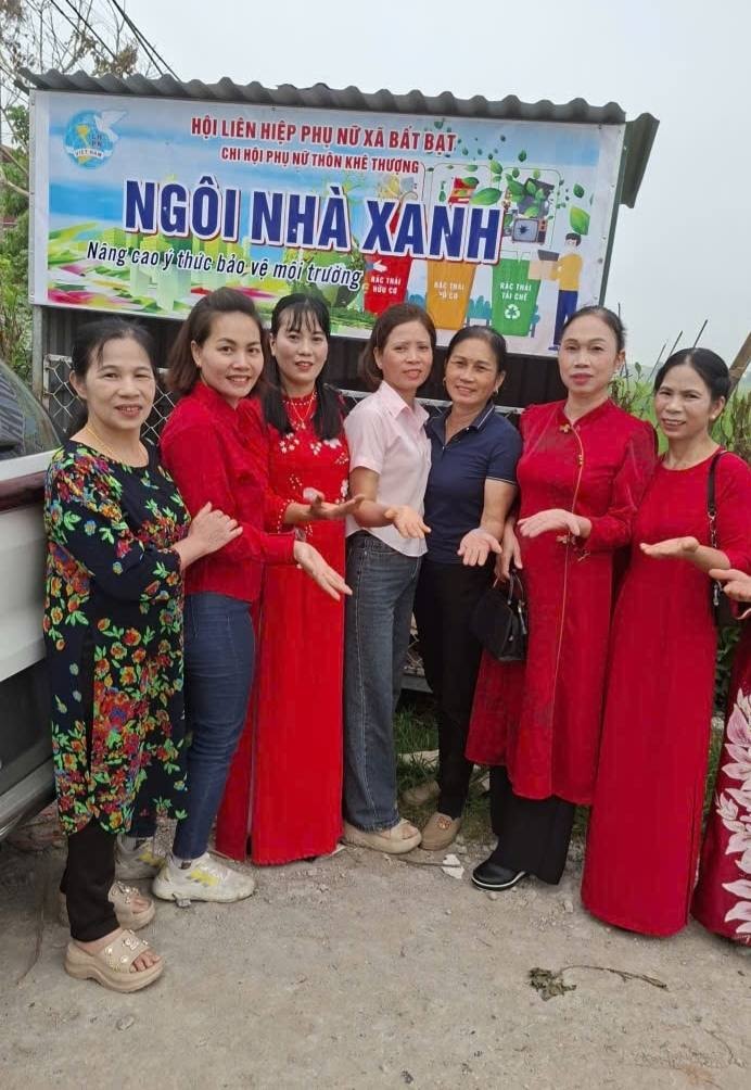 Tiêu biểu nhất phải kể đến mô hình “Ngôi nhà xanh” thu gom rác thải tái chế do các Chi hội Phụ nữ trên địa bàn xã triển khai thường xuyên và đều đặn. “Ngôi nhà xanh” là những khung sắt lưới được đặt tại các vị trí thuận tiện, giúp hội viên và nhân dân dễ dàng phân loại rác ngay từ đầu nguồn.
