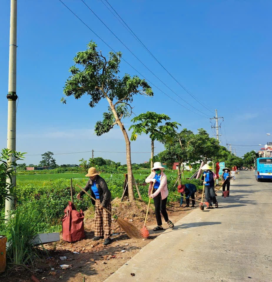 Theo đó, phát huy vai trò của phụ nữ trong bảo vệ môi trường, chị em cán bộ hội viên trên địa bàn toàn xã đã tích cực tham gia thực hiện phong trào xây dựng môi trường Thủ đô “Sáng, Xanh, Sạch, Đẹp” bằng nhiều hành động cụ thể. Hội đã tổ chức 04 buổi ra quân vệ sinh tuyến đường Xanh – Sạch – Đẹp; chăm sóc bồn hoa, tuyến đường nở hoa của do phụ nữ tự quản. Hội triển khai đến 22 Chi Hội phụ nữ phối hợp với Ban lãnh đạo thôn tham gia cuộc thi “Thôn sáng - xanh - sạch đẹp”, các Chi hội đã tích cực chỉnh trang đường làng ngõ xóm, cắt cỏ, thu gom rác, trồng cây xanh, cây hoa tại các tuyến đường tranh bích họa…