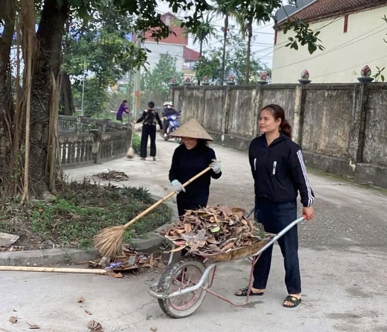 Phụ nữ xã Ứng Hòa tích cực tham gia vệ sinh môi trường. Ảnh: PNUH