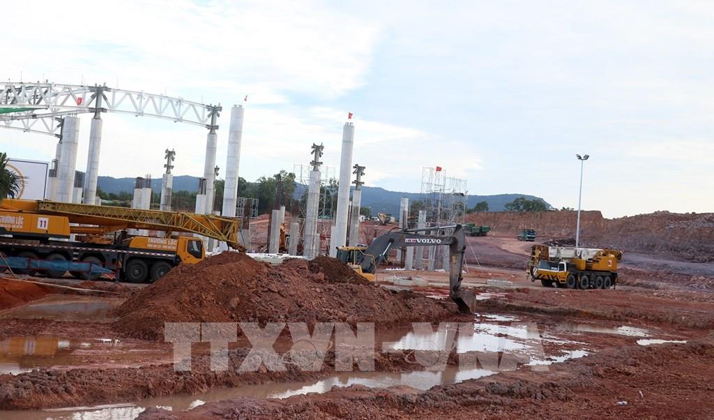 Thi công dự án đầu tư mở rộng Cảng hàng không quốc tế Phú Quốc (An Giang) phục vụ Hội nghị Cấp cao APEC 2027. Ảnh: Lê Huy Hải - TTXVN