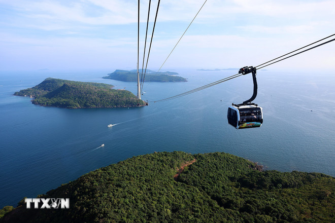 Cáp treo tới Hòn Thơm ở Phú Quốc. (Nguồn: TTXVN)