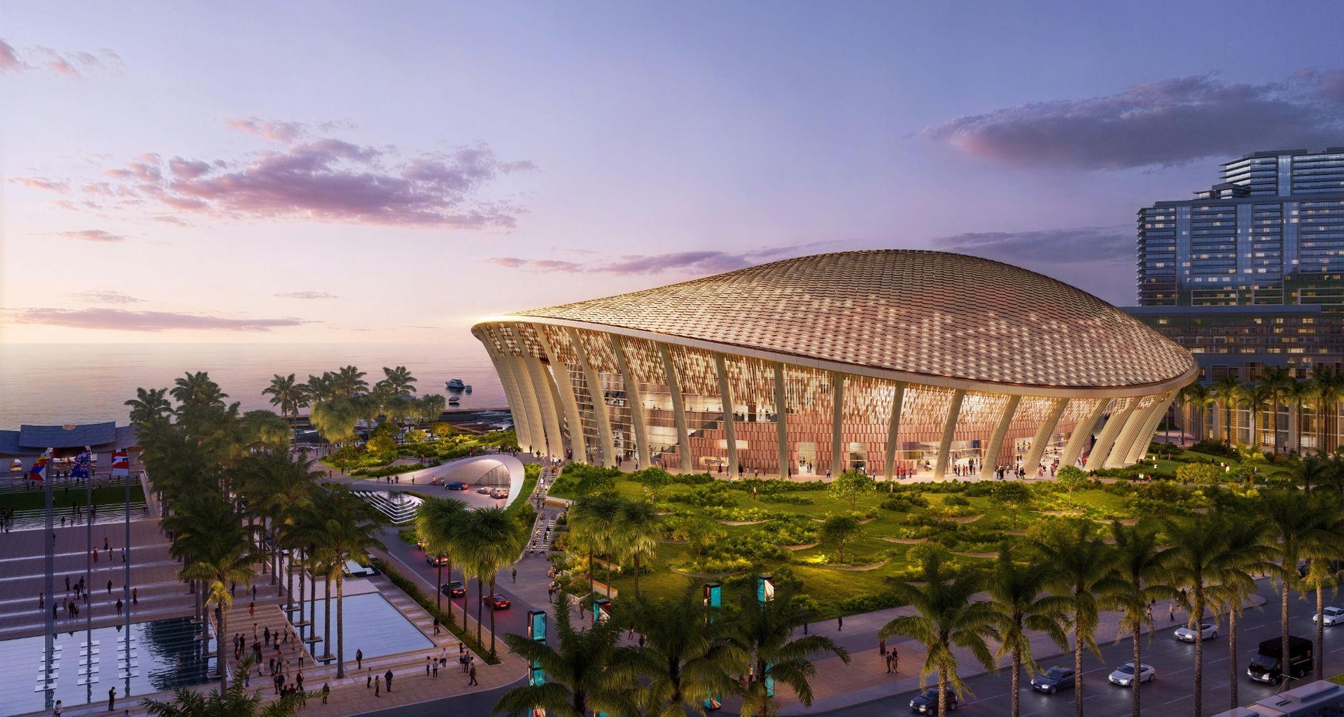 Trung tâm Hội nghị và Triển lãm với phần mái cong lấy cảm hứng từ sóng nước.