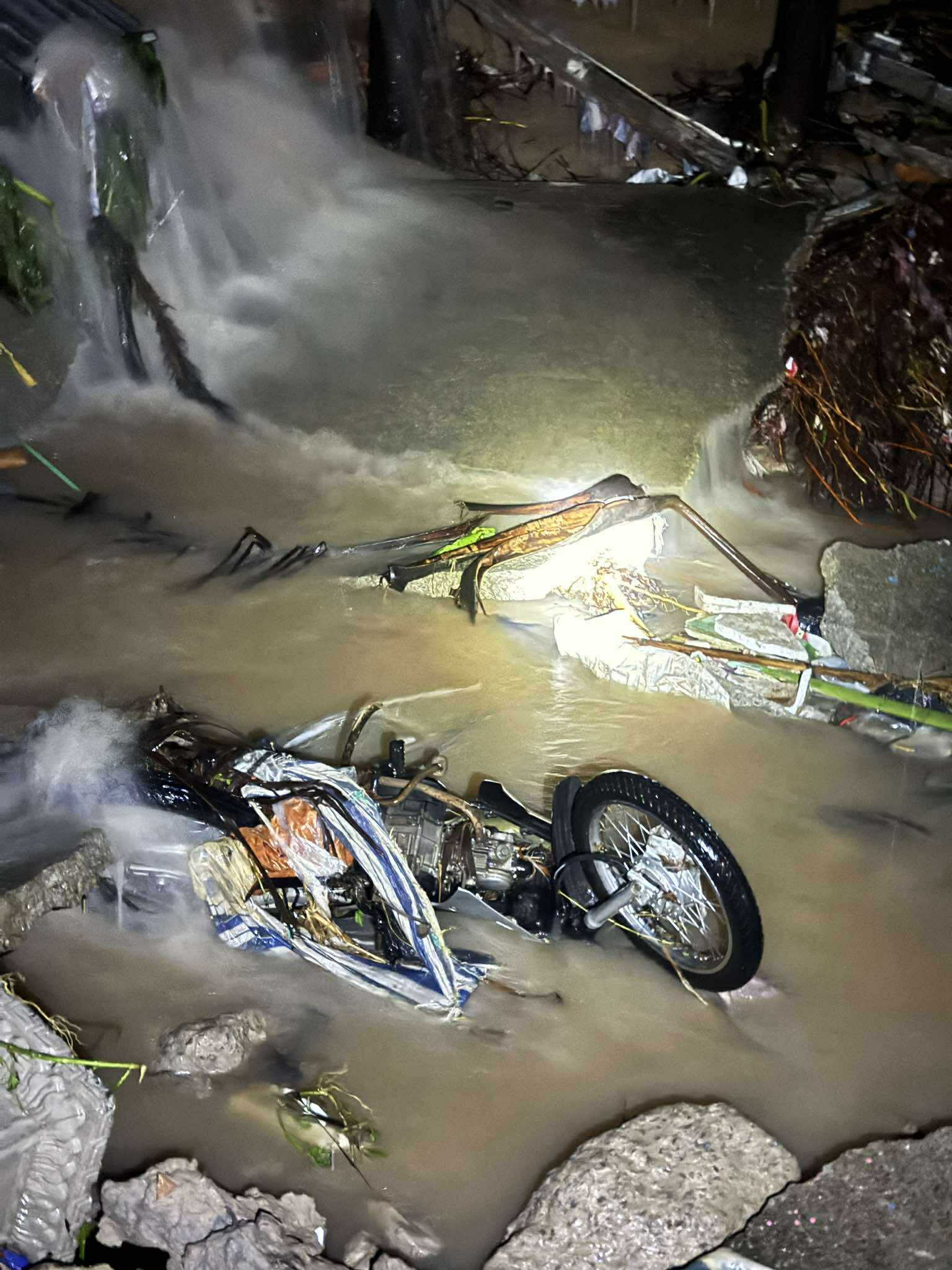 Khi đã thoát khỏi dòng nước xiết, anh Hiếu ngồi chờ lực lượng cứu hộ đến hỗ trợ. Tuy nhiên, theo anh, xe cứu hộ cũng bị kẹt lại do nước quá lớn. Mãi đến gần nửa đêm, nước bắt đầu rút dần, anh quay lại kiểm tra và thấy xe máy của mình đang nằm sâu dưới hố.