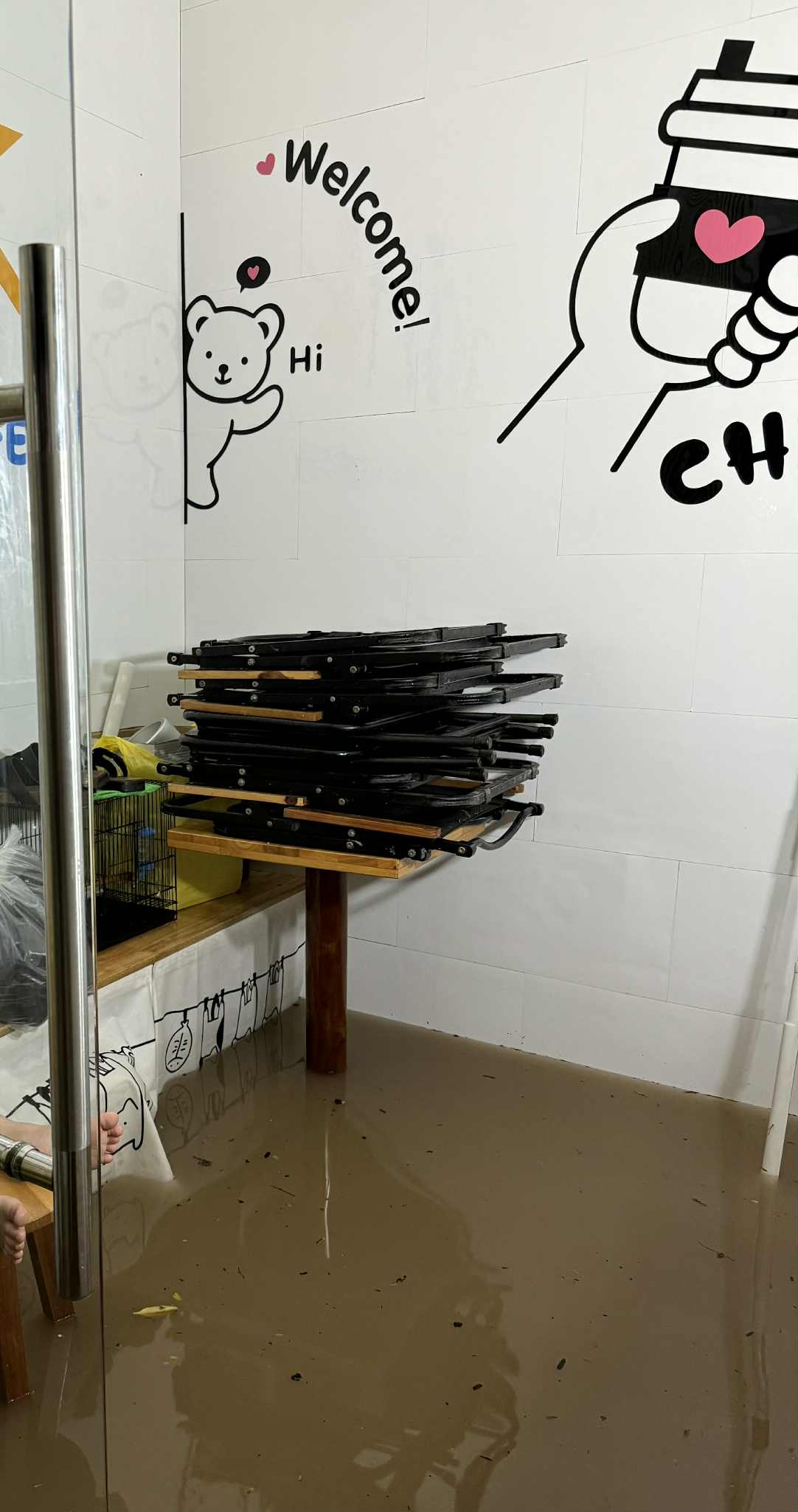 Nước ngập khiến việc kinh doanh của chị Kim bị ảnh hưởng khá nặng nề. Toàn bộ đồ điện trong quán đã hư hỏng, các đồ đạc khác đều bị thấm nước.