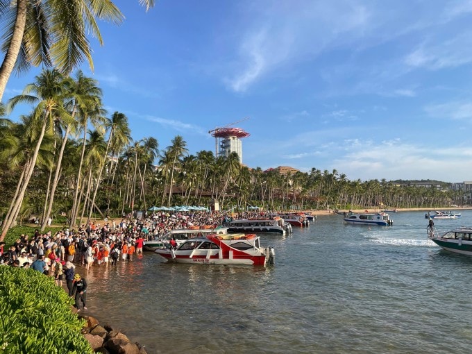Hàng nghìn du khách đổ ra bến tàu chờ canô để về đất liền. Ảnh: NVCC