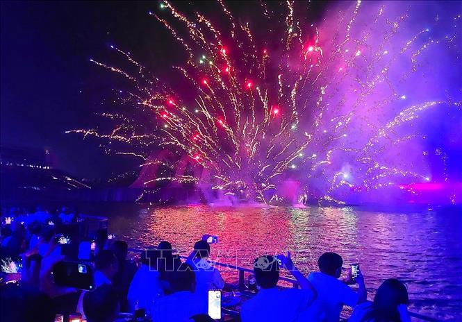 Du khách xem show diễn "Kiss Of The Sea" ("Nụ hôn của biển cả") tại đặc khu Phú Quốc (An Giang). Ảnh: Lê Huy Hải/TTXVN