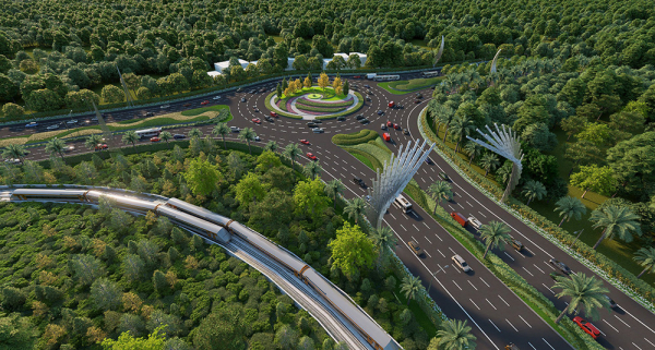 Phối cảnh trục giao thông 10 làn xe kết nối cùng tuyến tàu điện LRT đầu tiên.