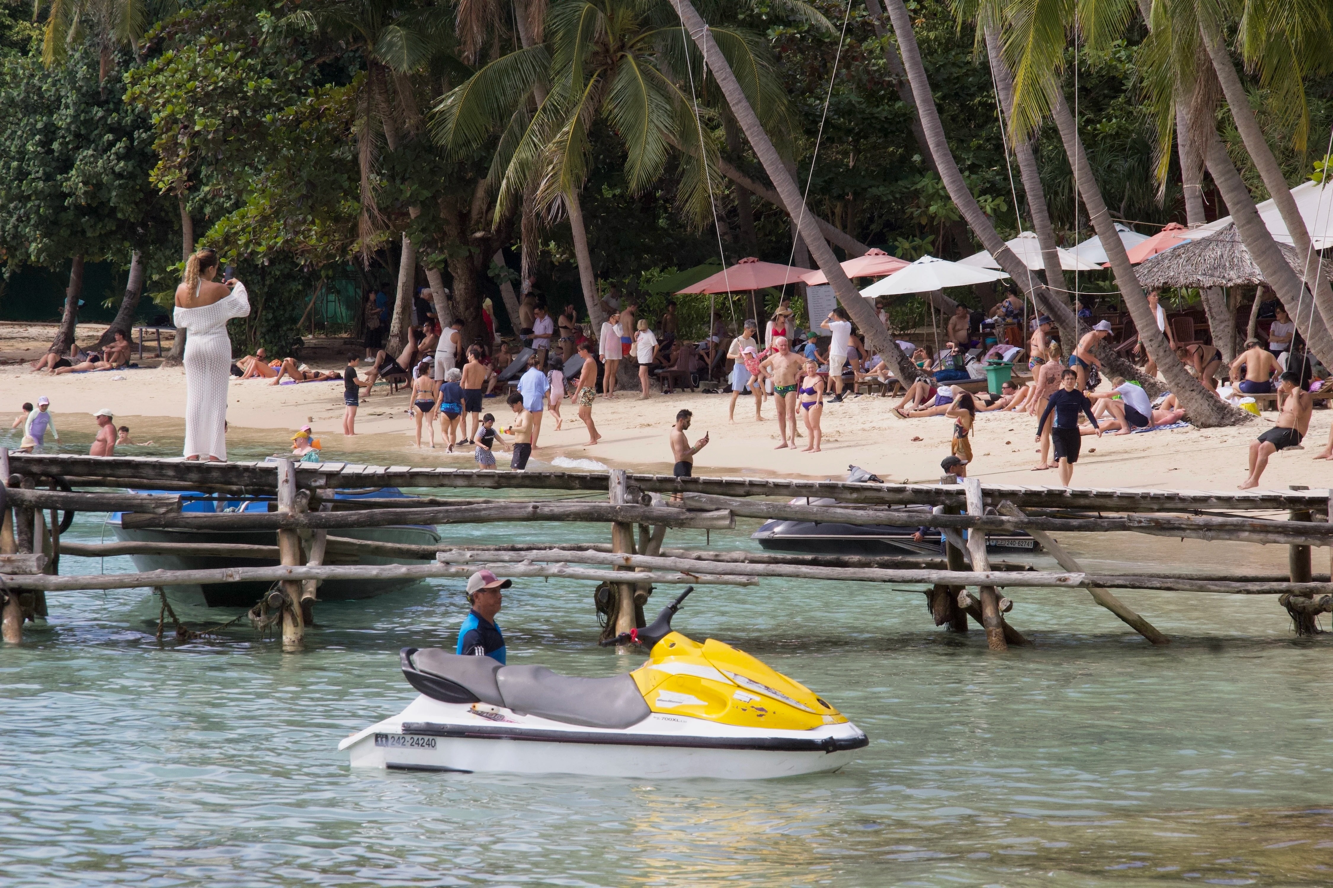 "Rợp" khách Tây tại hòn Mây Rút Trong, Phú Quốc, ngày 3/1. Ảnh: Minh Vi.