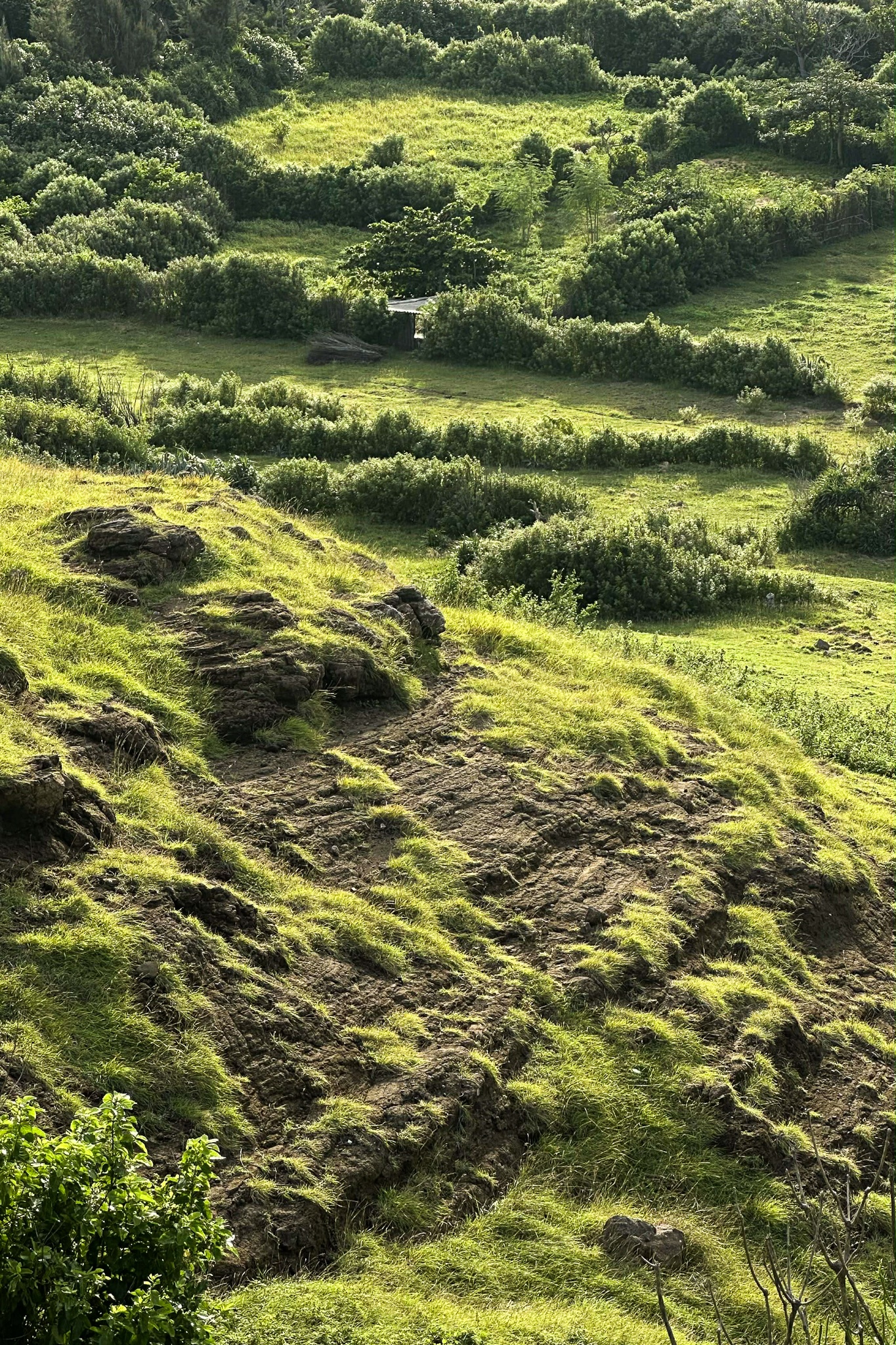 Sau những cơn mưa mùa hè, Phú Quý gây ấn tượng bởi những thảm cỏ xanh mướt dẫn ra biển. Ảnh: Khánh Huyền.
