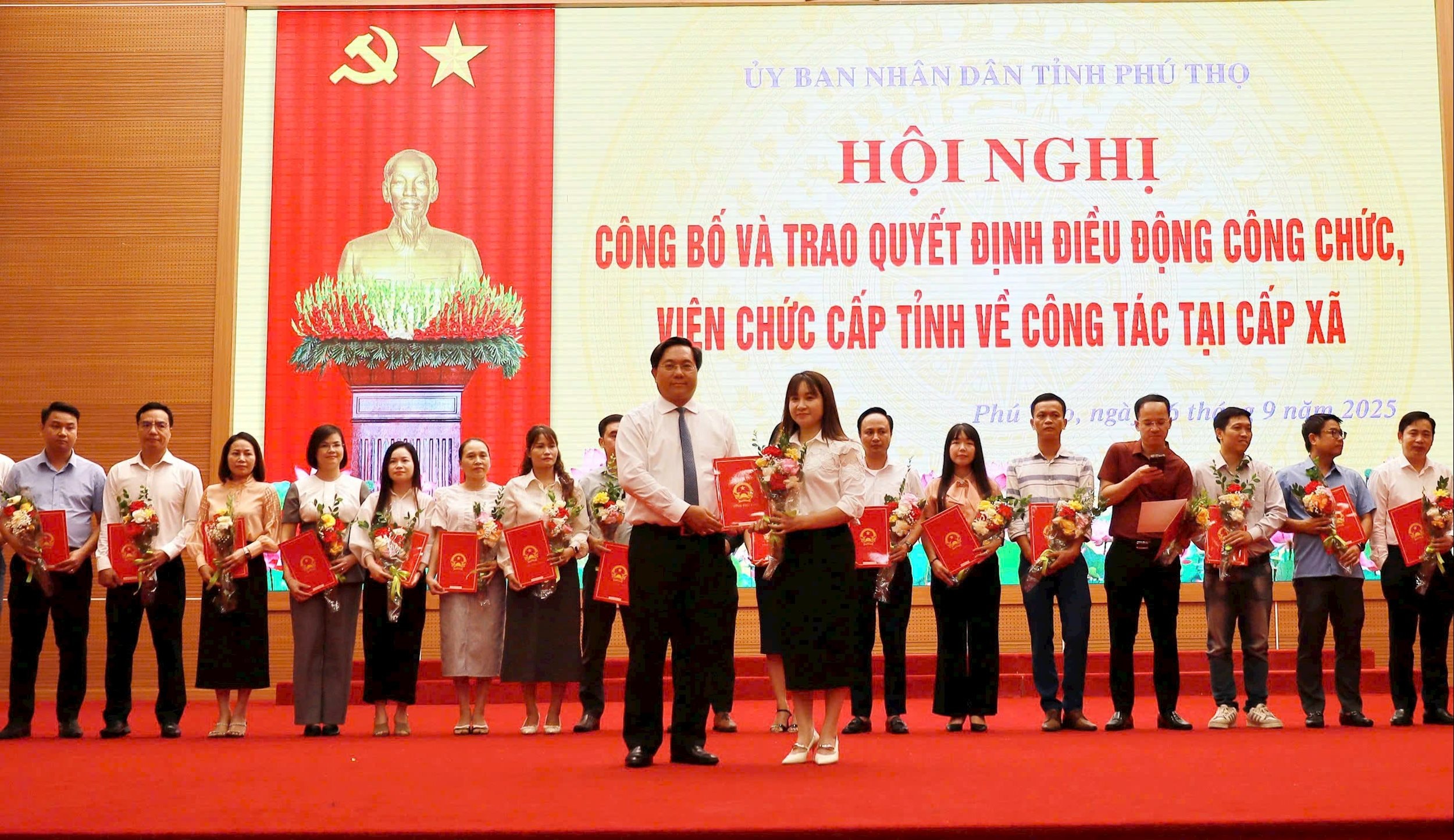 Chủ tịch UBND tỉnh Trần Duy Đông trao quyết định điều động công chức, viên chức cấp tỉnh về xã.