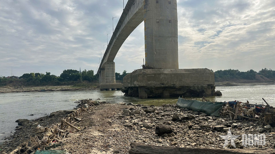 Cận cảnh móng cọc trụ T3 cầu sông Lô bị hư hỏng nặng, mất gần hết lớp bê tông bảo vệ.