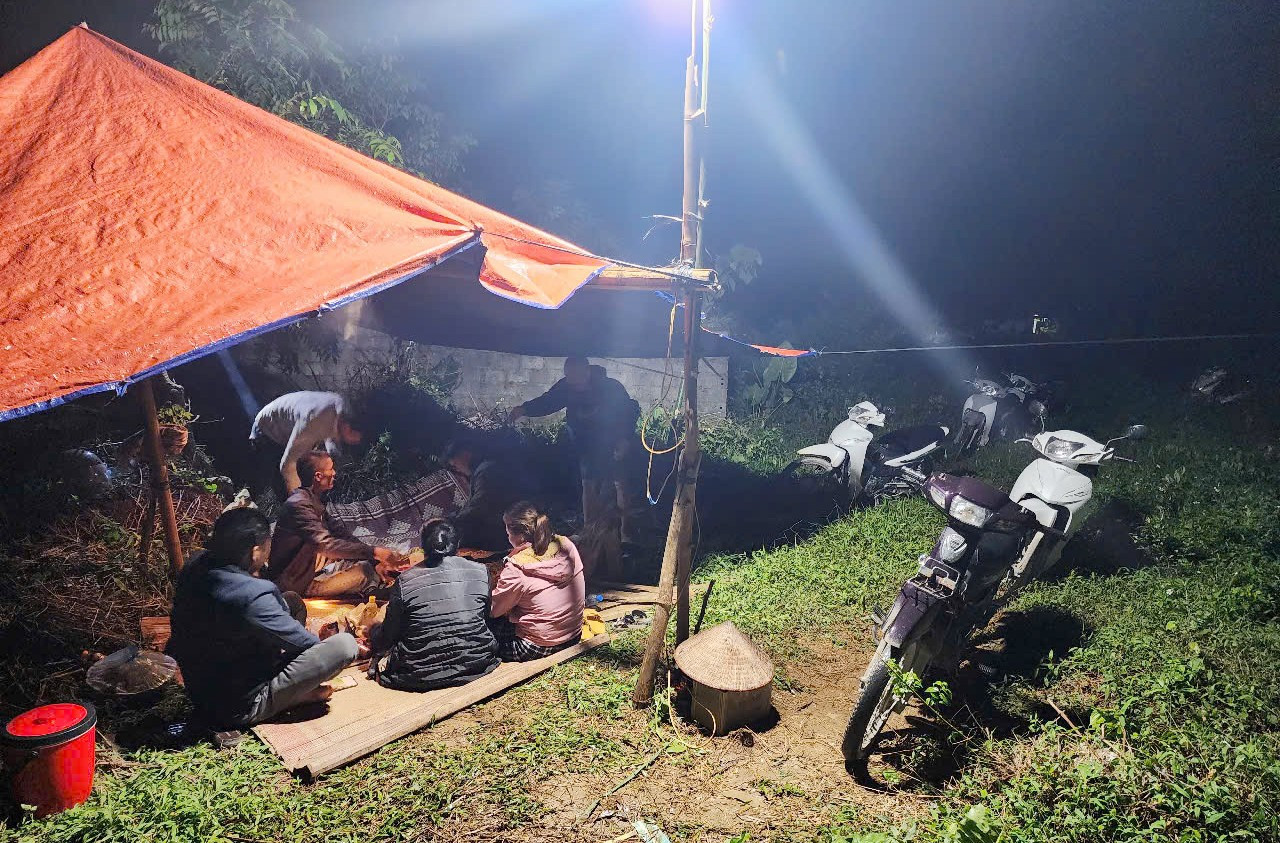 Người dân thức xuyên đêm ngăn không cho đơn vị thi công xây cột điện.
