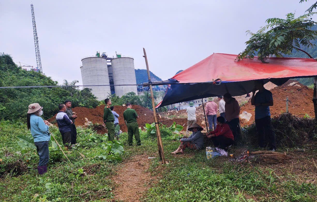 Phát hiện sự việc, người dân xóm Đồng Om đã dựng lán ngay sát khu vực công trình, yêu cầu dừng thi công và lấp hố chôn cột điện, đồng thời đề nghị chính quyền địa phương cùng lực lượng chức năng xuống hiện trường lập biên bản.