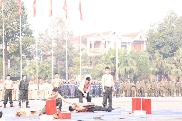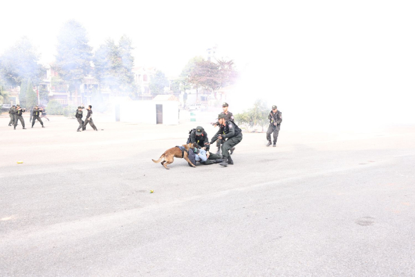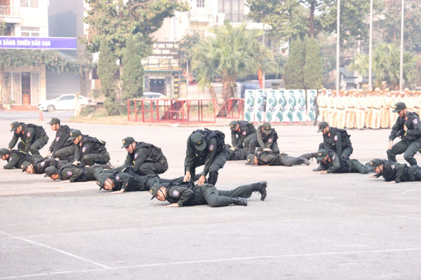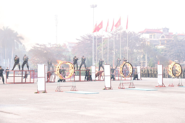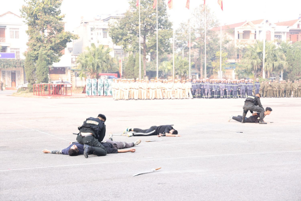 Tại buổi lễ, các đại biểu đã được xem diễn tập phương án xử lý tình huống đánh bắt tội phạm nguy hiểm trên sông do lực lượng Cảnh sát đặc nhiệm thực hiện trên màn hình LED và tình huống thực tế phần biểu diễn, võ thuật CAND do lực lượng Cảnh sát đặc nhiệm và Cảnh sát cơ động thực hiện:
