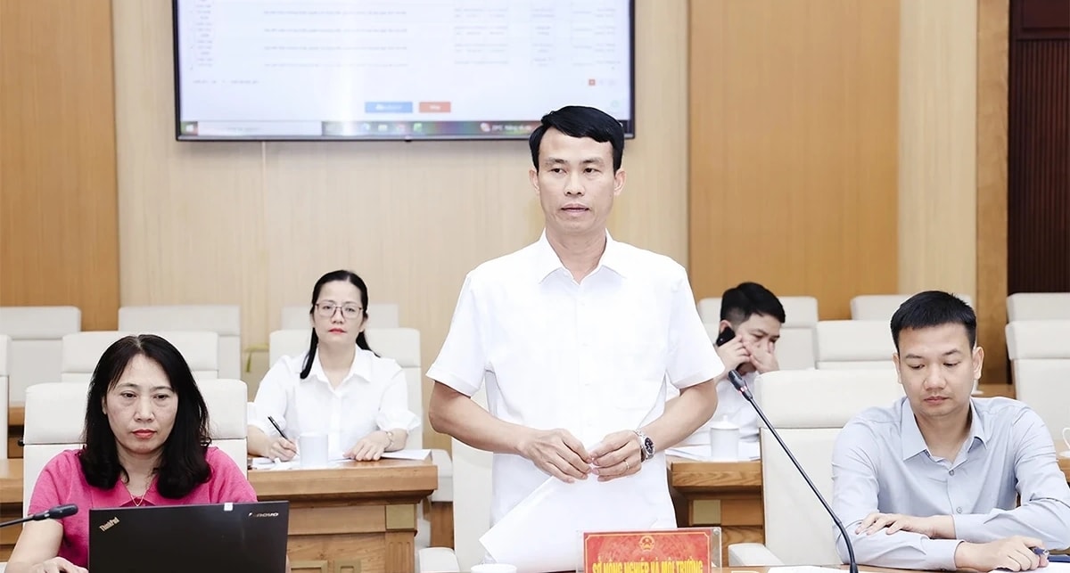 Lãnh đạo Sở Nông nghiệp và Môi trường báo cáo tại hội nghị. Ảnh: Lê Minh