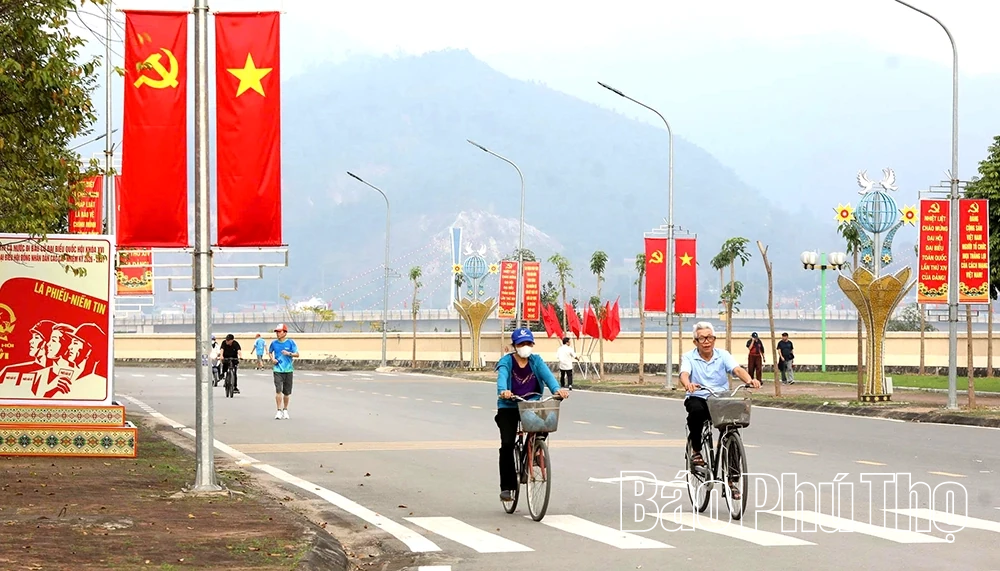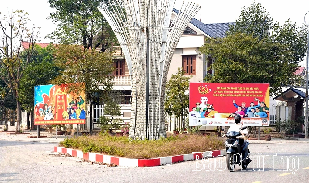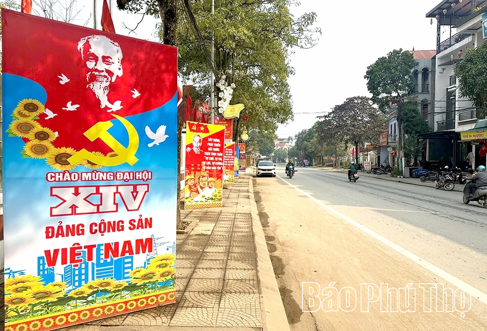 Các tuyến đường chính trên địa bàn xã Hạ Hòa được trang hoàng rực rỡ chào đón sự kiện chính trị quan trọng.