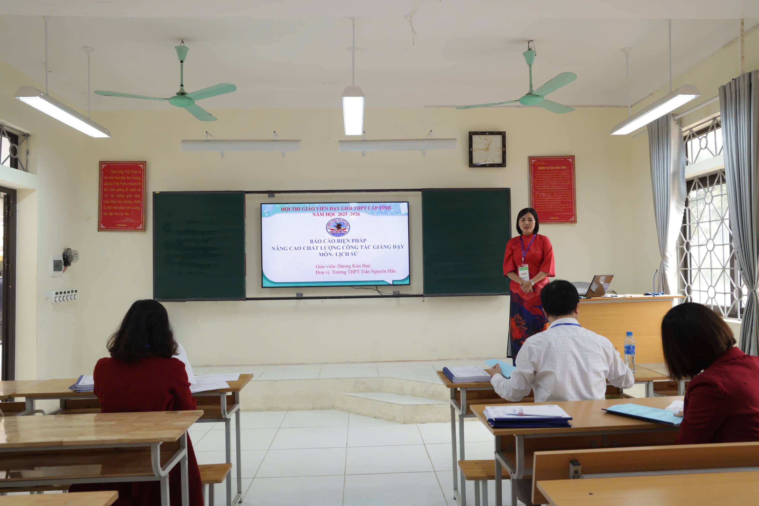 Các giáo viên tham gia phần thi thực hành tại Trường THPT Nguyễn Viết Xuân