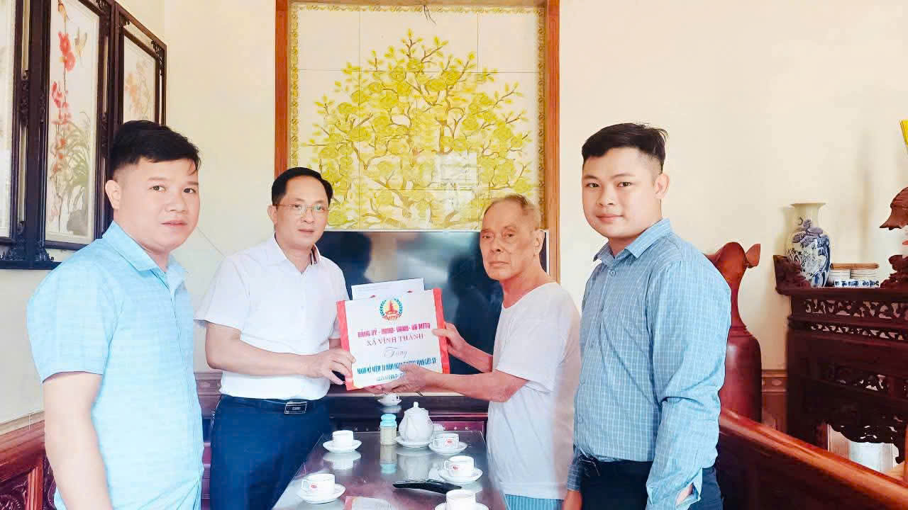 Ông Vũ Đức Kim, Phó Bí thư thường trực Đảng ủy xã Vĩnh Thành thăm hỏi, tặng quà các gia đình chính sách.