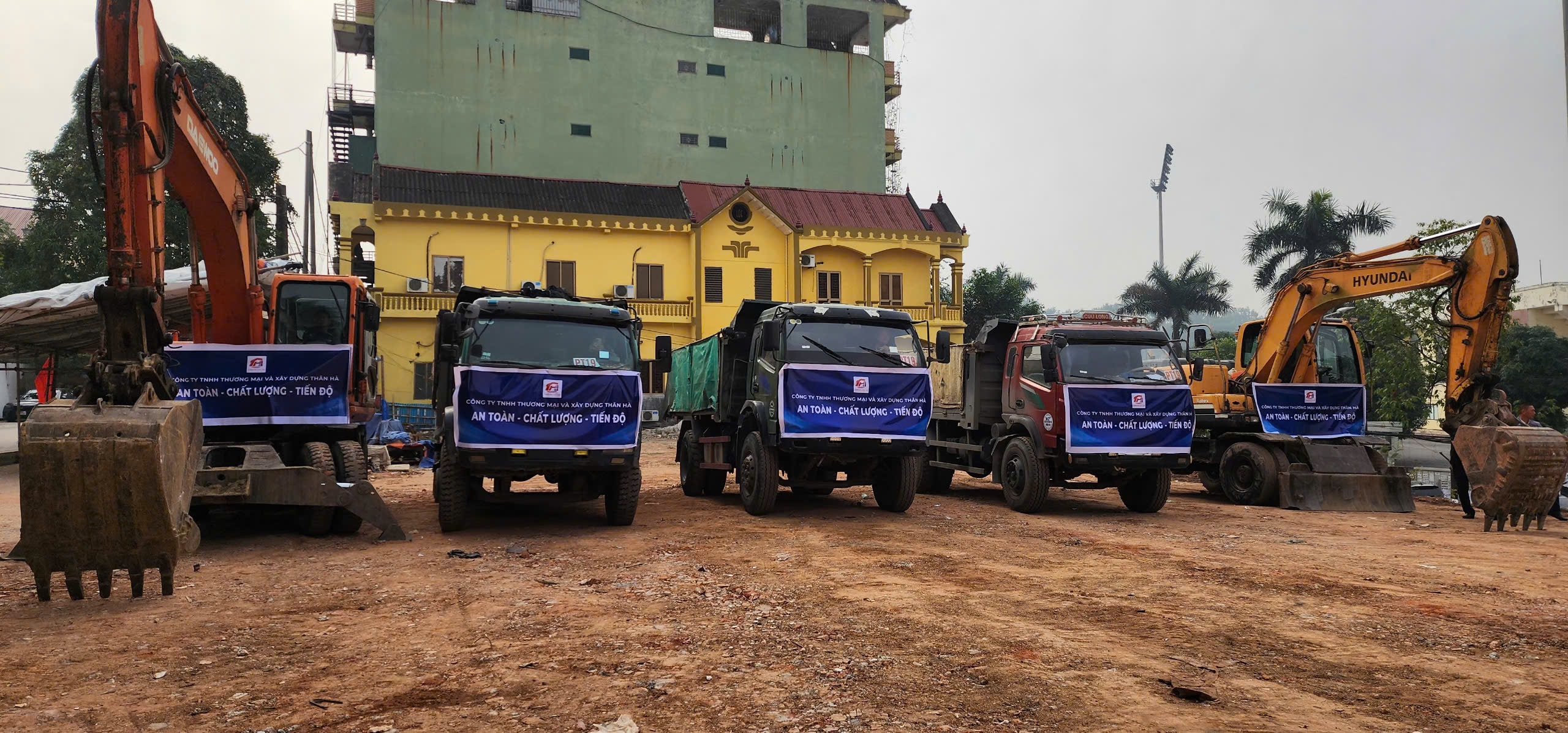 Máy móc, thiết bị đã sẵn sàng thi công dự án.
