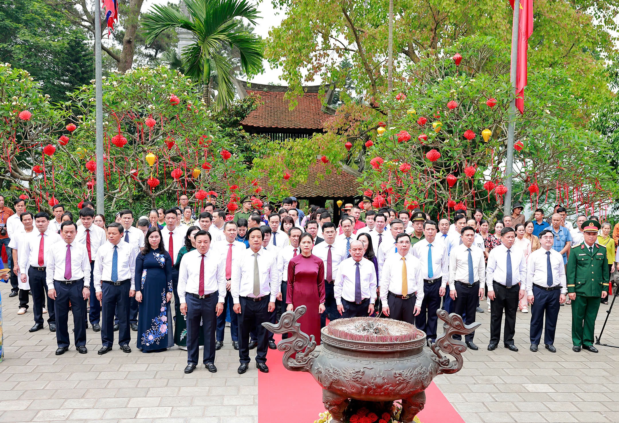 Dự lễ dâng hương có các ông: Bùi Đức Hinh, Phó Bí thư Tỉnh ủy, Chủ tịch HĐND tỉnh Phú Thọ; Bùi Thị Minh, Phó Bí thư Tỉnh ủy, Chủ tịch Ủy ban MTTQ tỉnh Phú Thọ; Phó Bí thư Tỉnh ủy Phú Thọ: Bùi Huy Vĩnh, Nguyễn Mạnh Sơn; ông Nguyễn Huy Ngọc, Tỉnh ủy viên, Phó Chủ tịch UBND tỉnh Phú Thọ, Trưởng Ban tổ chức Giỗ Tổ Hùng Vương - Lễ hội Đền Hùng và Tuần Văn hóa - Du lịch Đất Tổ năm 2026; lãnh đạo các sở, ban, ngành, đoàn thể của tỉnh Phú Thọ cùng đông đảo Nhân dân và du khách thập phương.