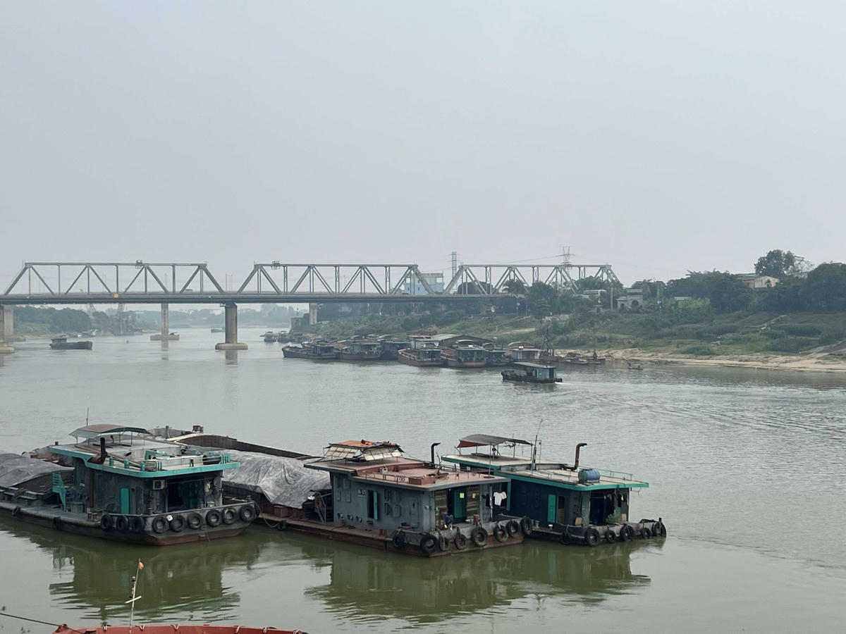 Tàu vận chuyển cát sỏi trên sông Lô đoạn qua Việt Trì, Phú Thọ. Ảnh: Tùng Duy